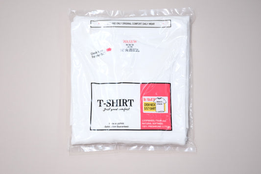 ネック周りは、首から鎖骨にかけてのラインが美しく見えるよう、すっきりとした設計に。身幅も細すぎず太すぎず、日常に自然と馴染むバランスに仕上げています。 ただ、このプロダクトで一番お伝えしたいのは「着心地」です。 もともと私は下着の製作に携わっていた経験があり、肌に直接触れるものだからこそ、ストレスのない着用感を徹底的に追求してきました。その中で辿り着いたのが、フラットシーマーによる縫製です。 縫い代の凹凸を極限までなくし、肌に触れたときの違和感を限りなくゼロに近づける。シンプルなTシャツだからこそ、その差がはっきりと現れます。 生地には、尾州でも限られた編機でしか表現できない、超ハイゲージ40ゲージのジャージー素材を採用。毛羽を極限まで取り除いたコンパクトコットンを使用し、限界まで度詰めして編み上げています。 しっかりとしたハリがありながら、驚くほど滑らかでドライなタッチ。さらに高濃度のシルケット加工を施すことで、まるでシルクが混ざっているかのような上品な艶を持たせました。 そして、この素材の魅力はここで終わりではありません。着用と洗濯を繰り返すことで、リジッドデニムのように少しずつ風合いが変化し、より柔らかく、より身体に馴染んでいきます。 正直に言えば、この一着は「自分の中のこれがいい」を詰め込んだ、とても自分本位なプロダクトです。それでも、そのこだわりがどこかで誰かの心地よさに繋がれば嬉しいと思っています。 着るたびに、自分の一着になっていく感覚。その過程も含めて楽しんでいただきたい一枚です。 【Material】COTTON 100% 【Color】WHITE.NAVY 【Size】S:着丈 107cm / 裾幅53.5cm / 肩幅44cm / 袖丈22.5cm / 着丈65.5cmM:着丈 110cm / 裾幅55cm / 肩幅45cm / 袖丈23.5cm /...