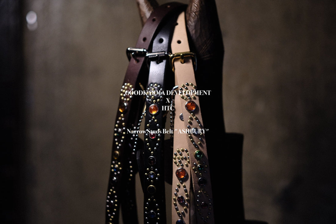 LAのHTCとコラボした幅3/4インチのナロースタッズベルト"アシュベリー"。