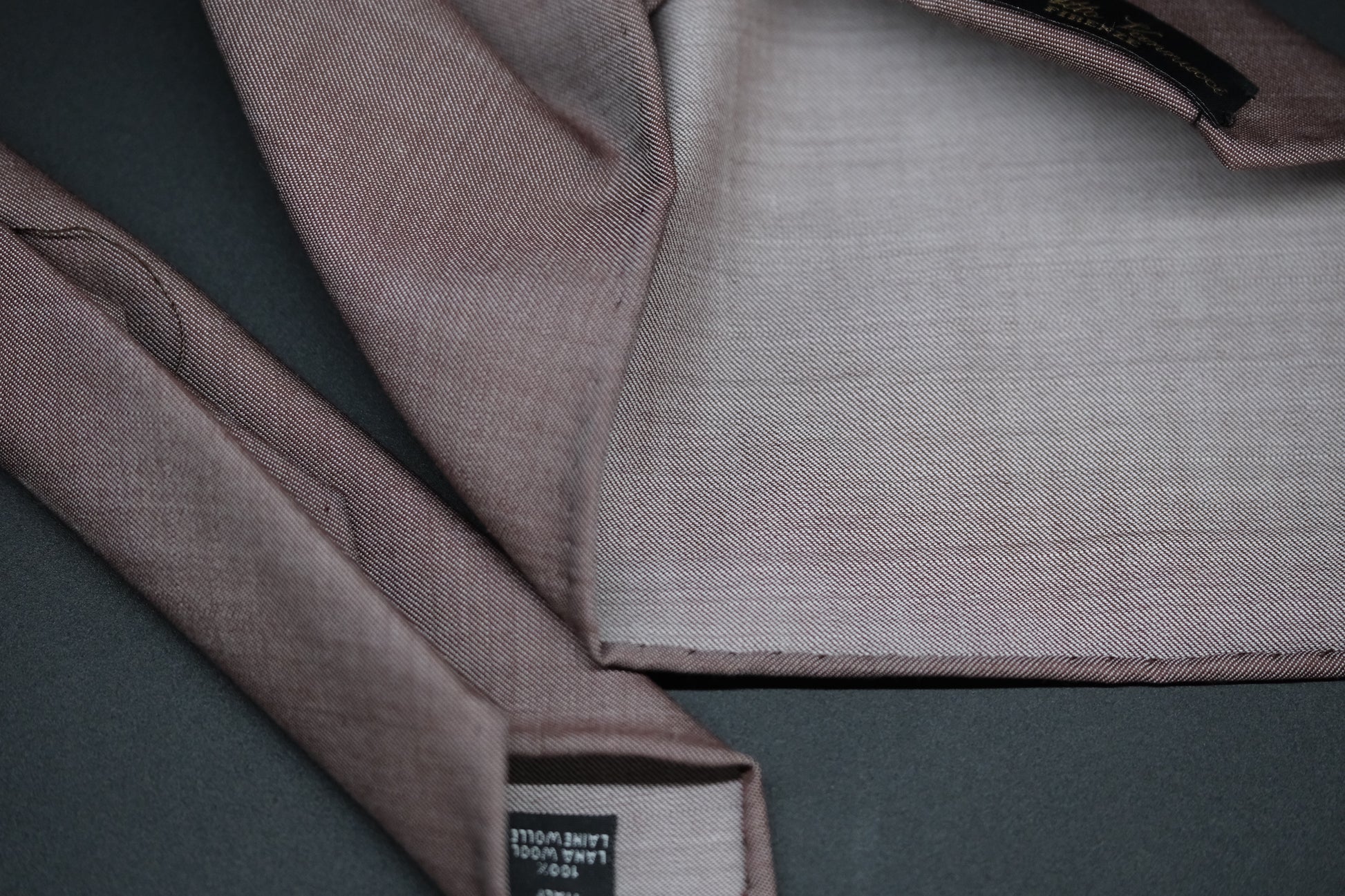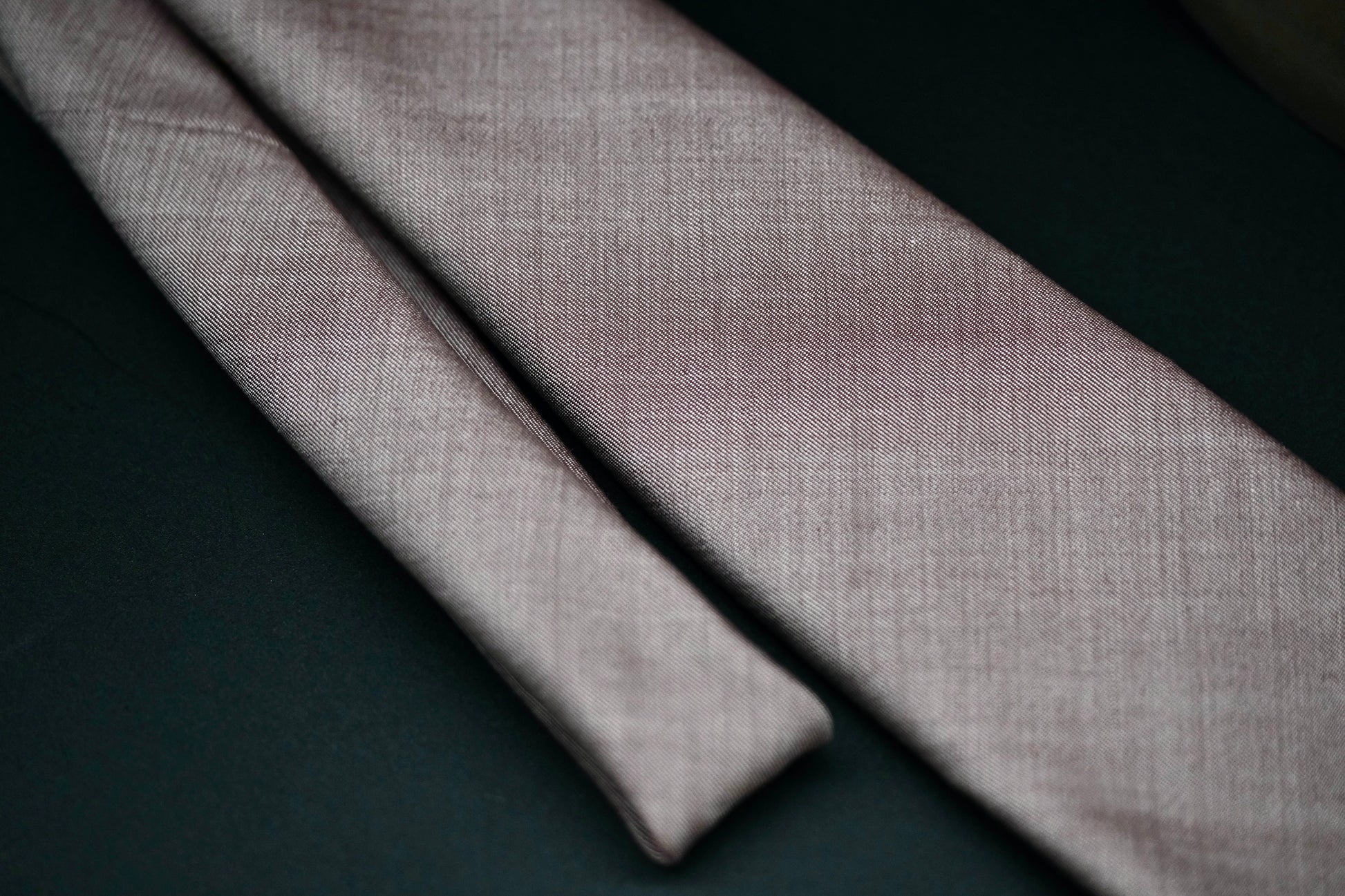 ガチガチにミシンで縫われ、アイロンで潰されたネクタイは捩れ、ハンドで柔らかく生地の伸縮を考えて丁寧に縫われたものはまっすぐ伸びる。