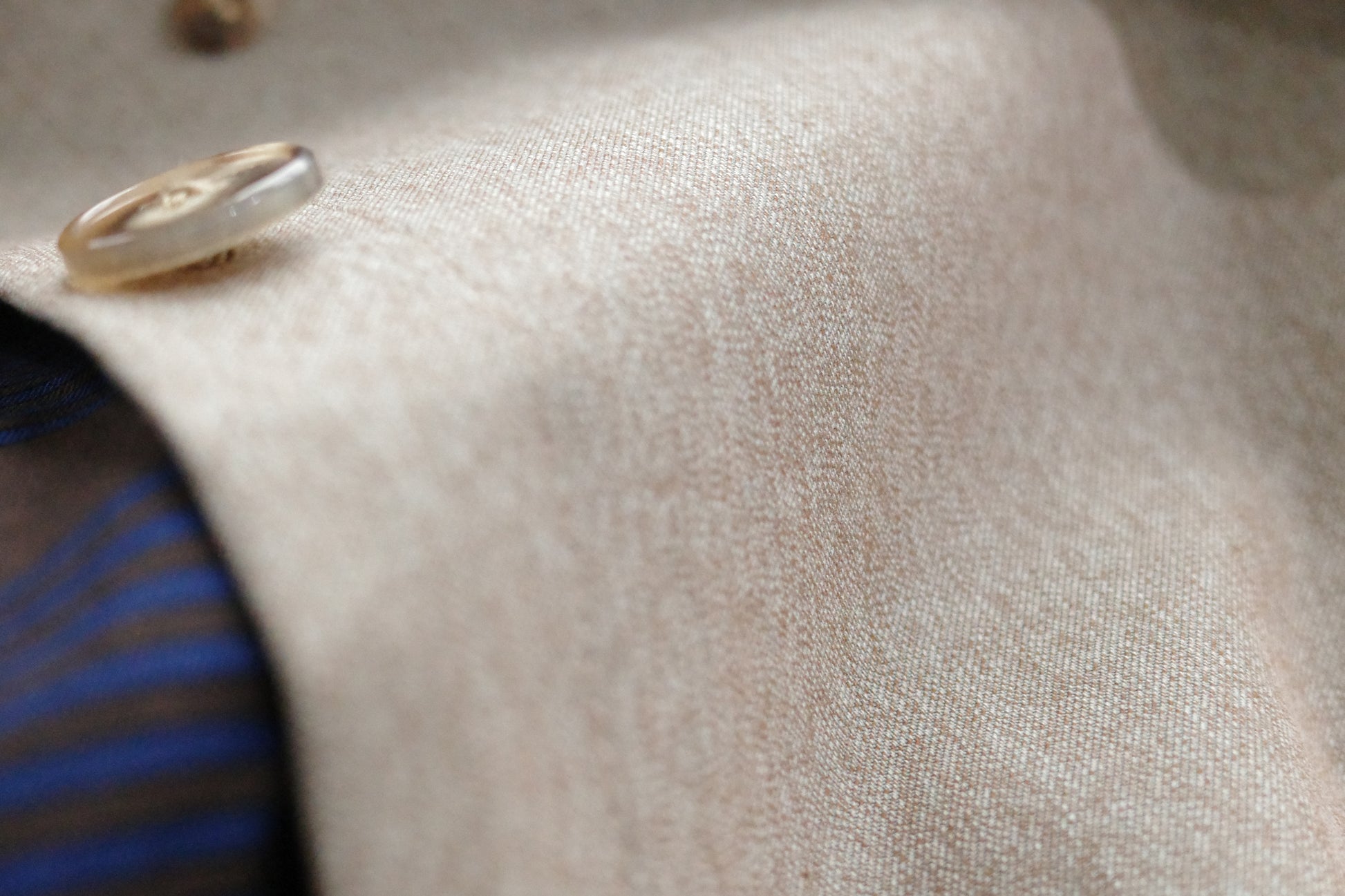 ハイカウントに織り込まれたギャバジンは特殊な加工により撥水性を損なうことなく、通気性を確保しているアナログに見えてとてもハイテクな生地です。