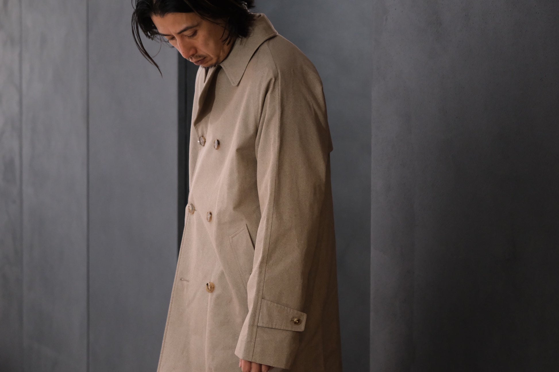 1928年にドーヴィル海岸を訪れた際のスナップ写真をベースに、ベルト無し、ダブルブレスト、という共通のディテールをもつ当時の”Motoring Coat”(カーコート)をもう一つのインスピレーションとしました。