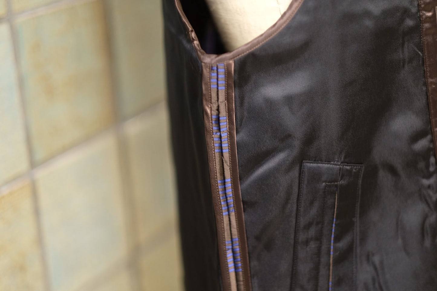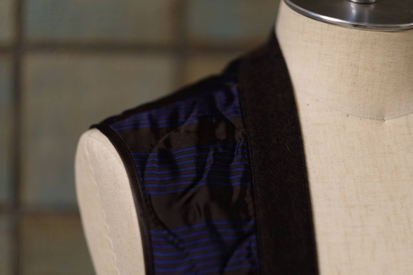 COHERENCEのアウター全てに共通で着脱することが出来るシルクで作られた真綿のライニング。