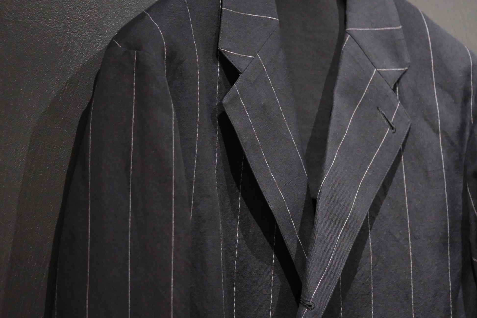 国内の素材メーカーによる、ウールリネンをベースにストライプ柄を別注したオリジナル素材を使用。