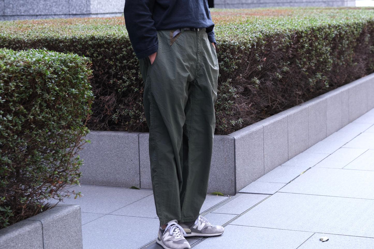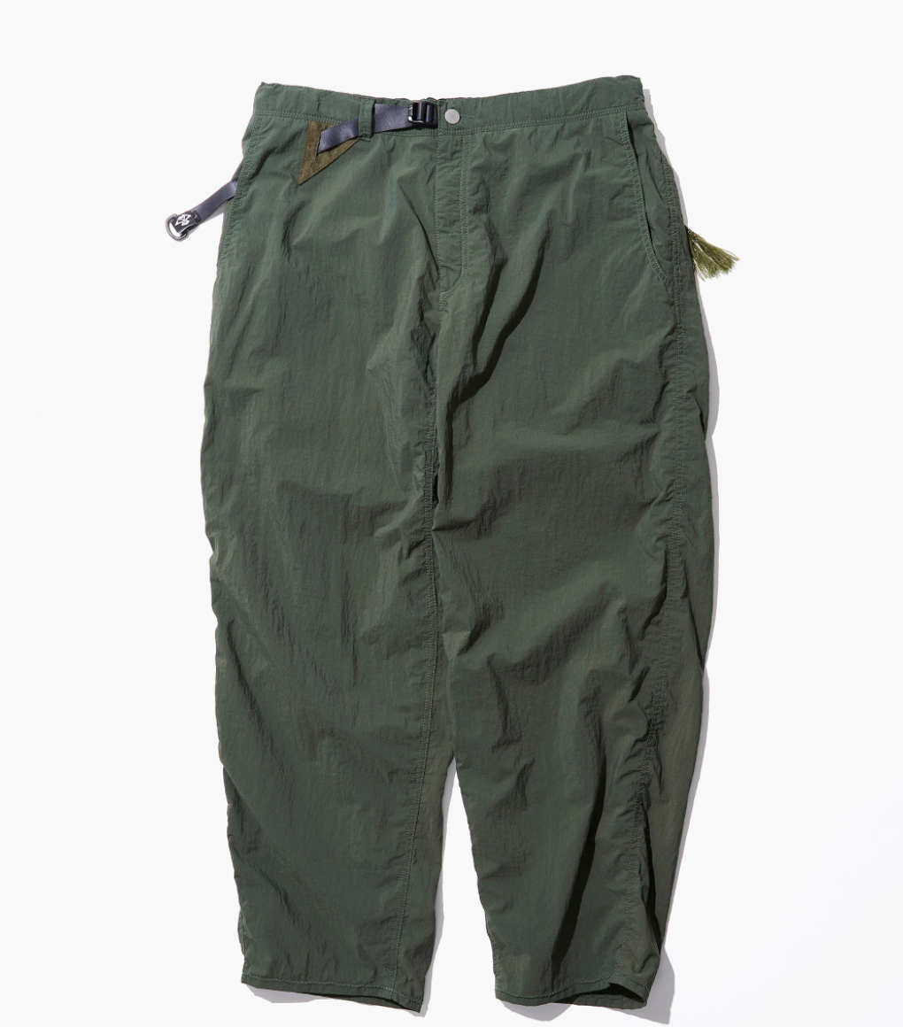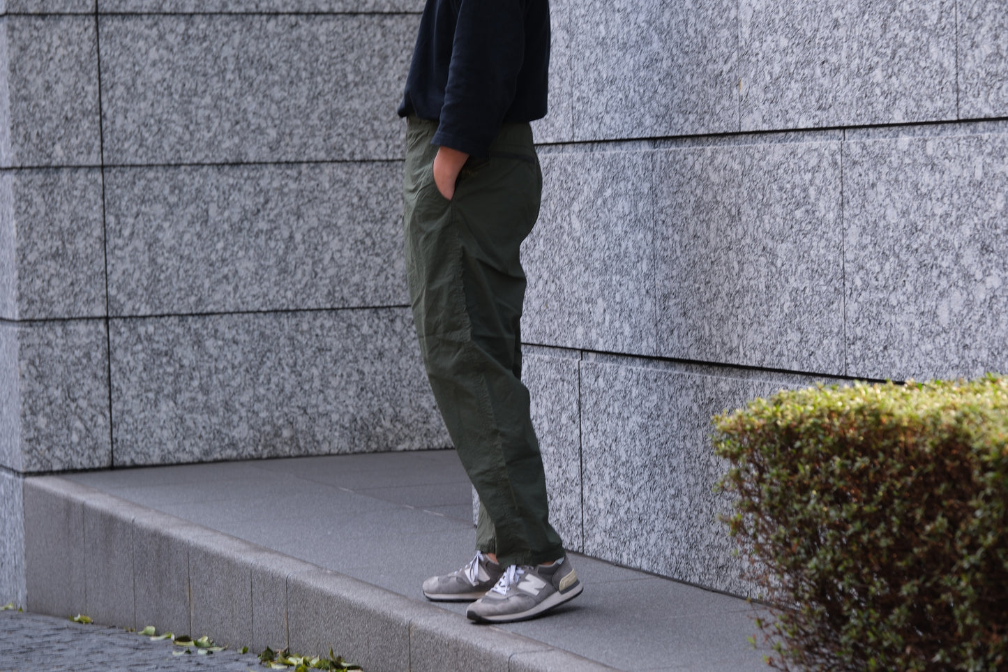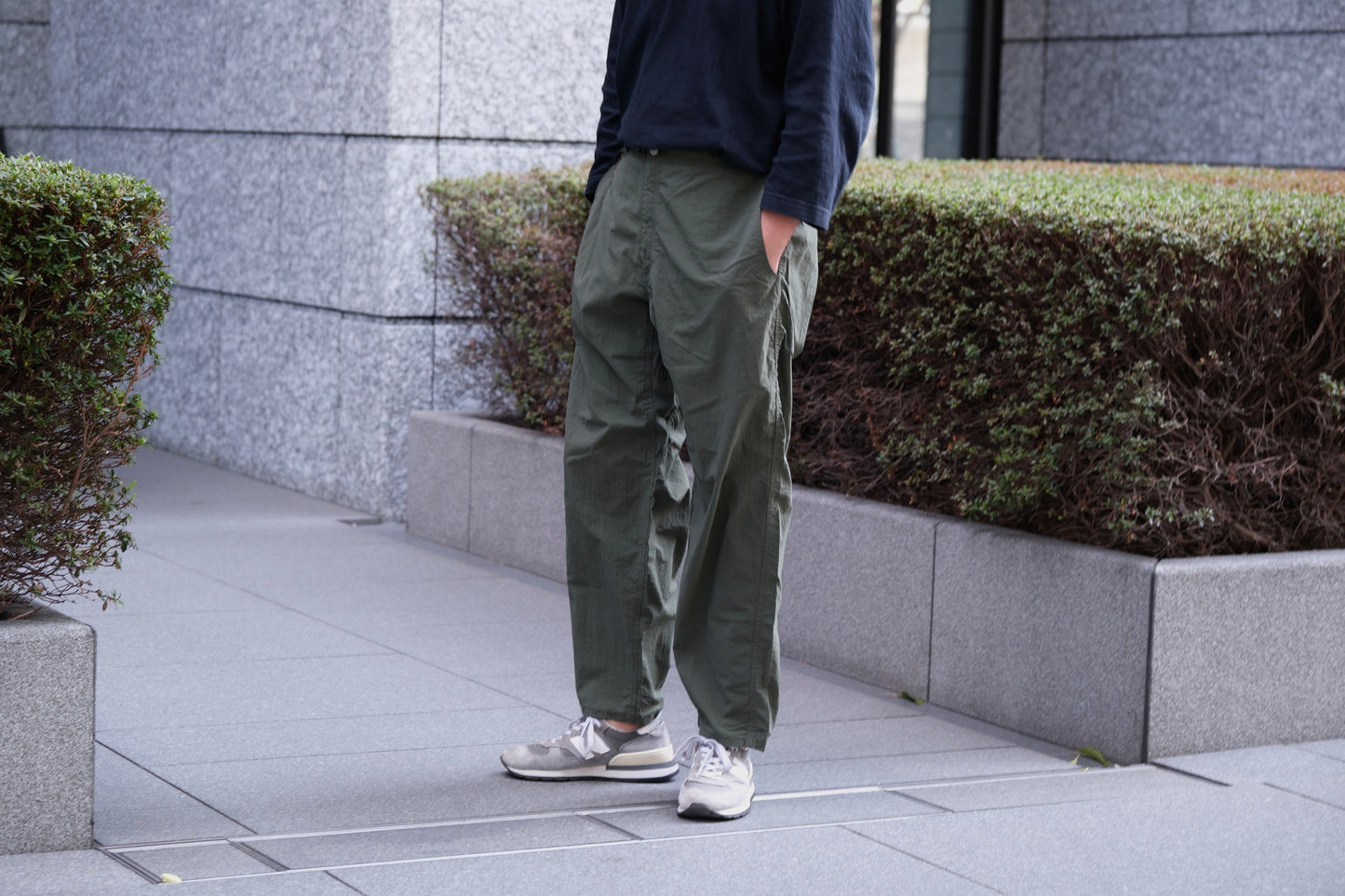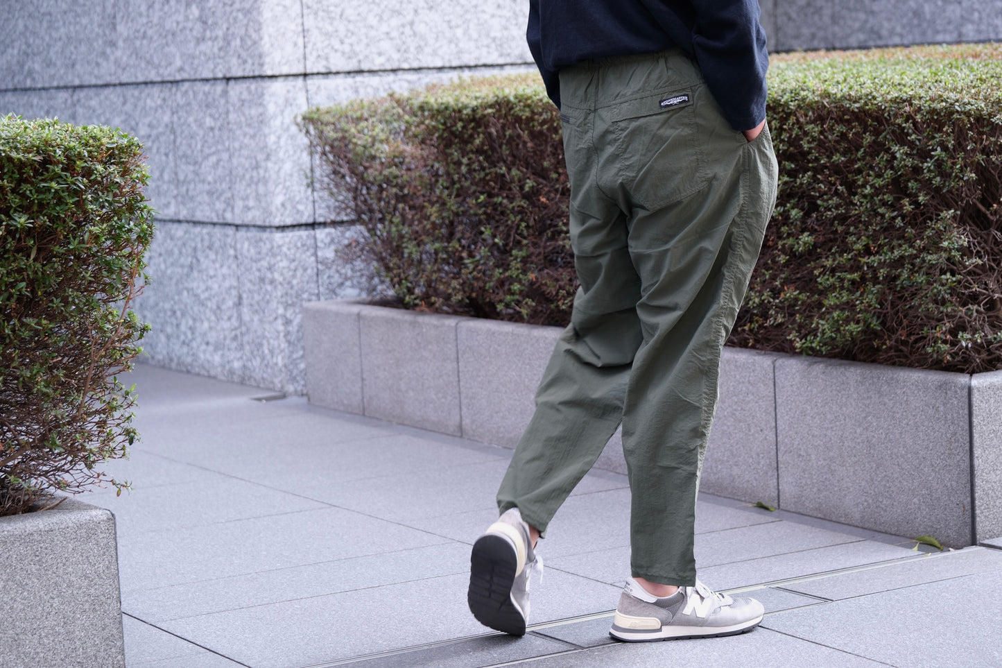 軽快感とシャリ感のある風合いを持つナイロン100%「フェザーナイロン」に載せ替えた定番パンツ ストーンマスターパンツ。気温・湿度が高い夏場の時期にはうってつけのドライ感のあるファブリックを提案。