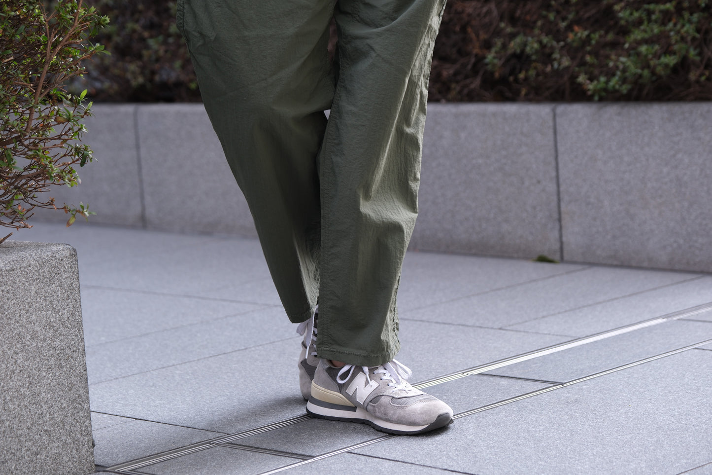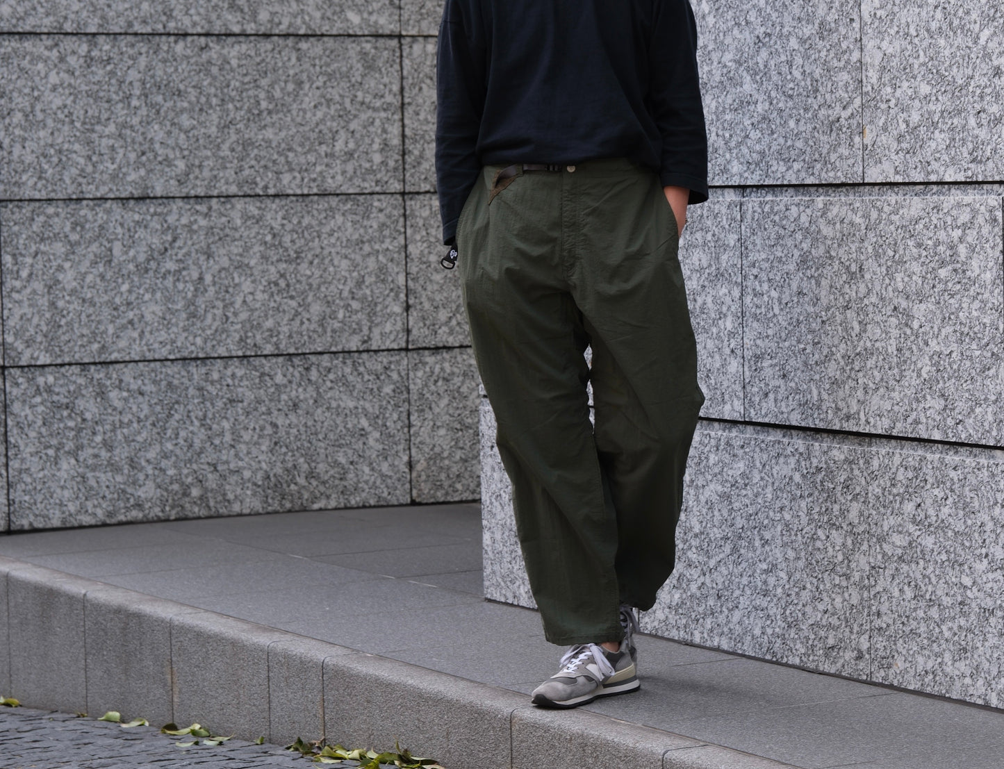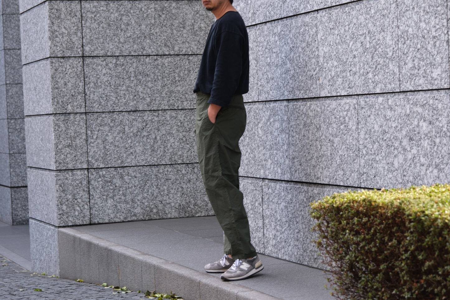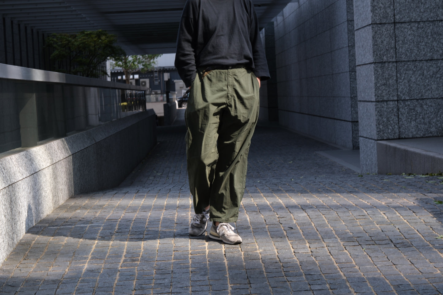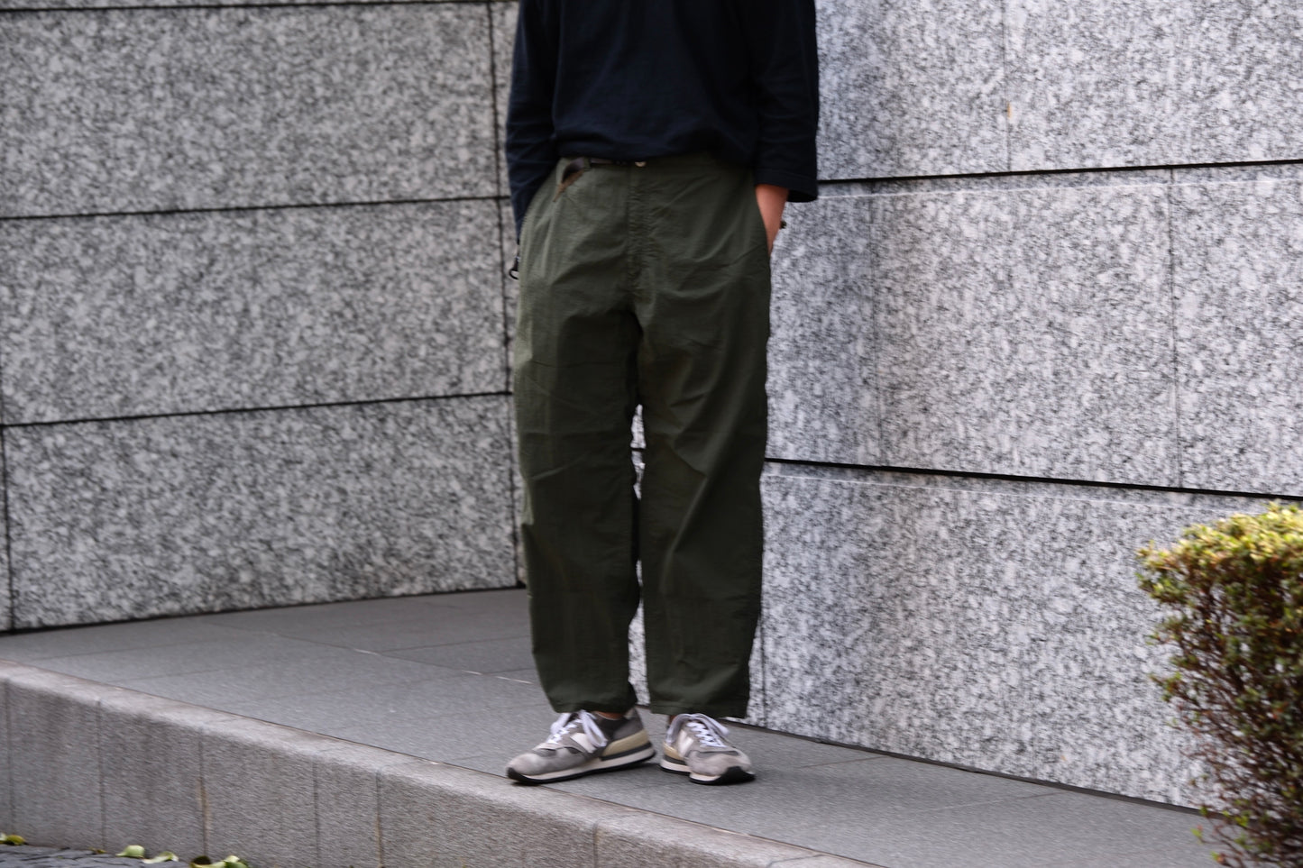 軽快感とシャリ感のある風合いを持つナイロン100%「フェザーナイロン」に載せ替えた定番パンツ ストーンマスターパンツ。気温・湿度が高い夏場の時期にはうってつけのドライ感のあるファブリックを提案。