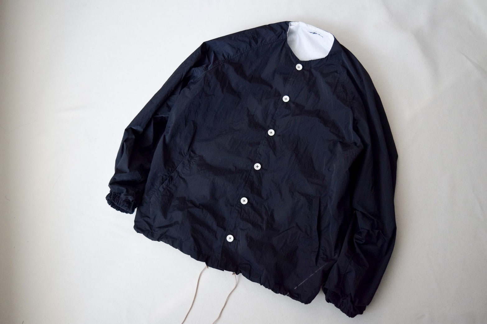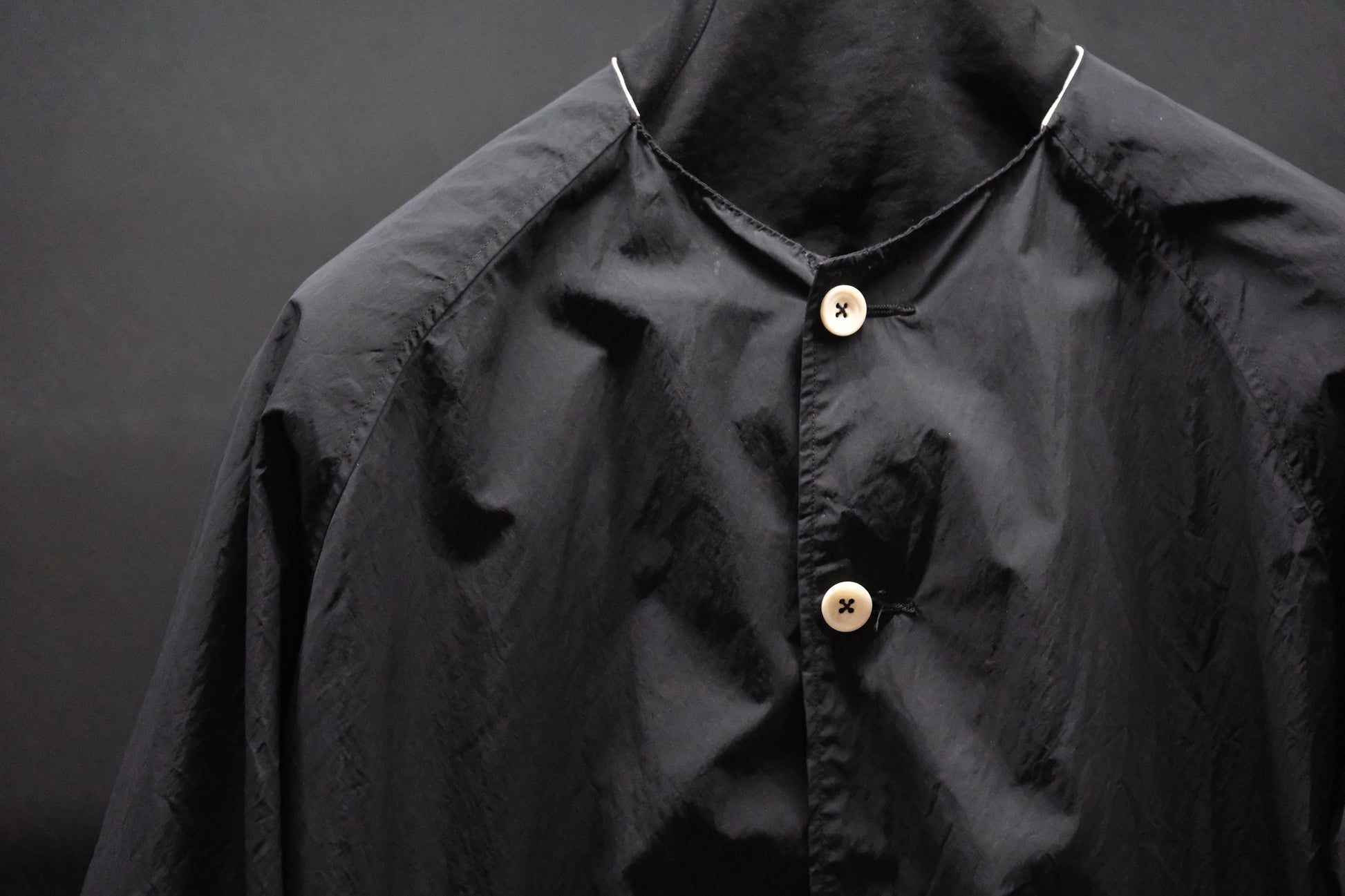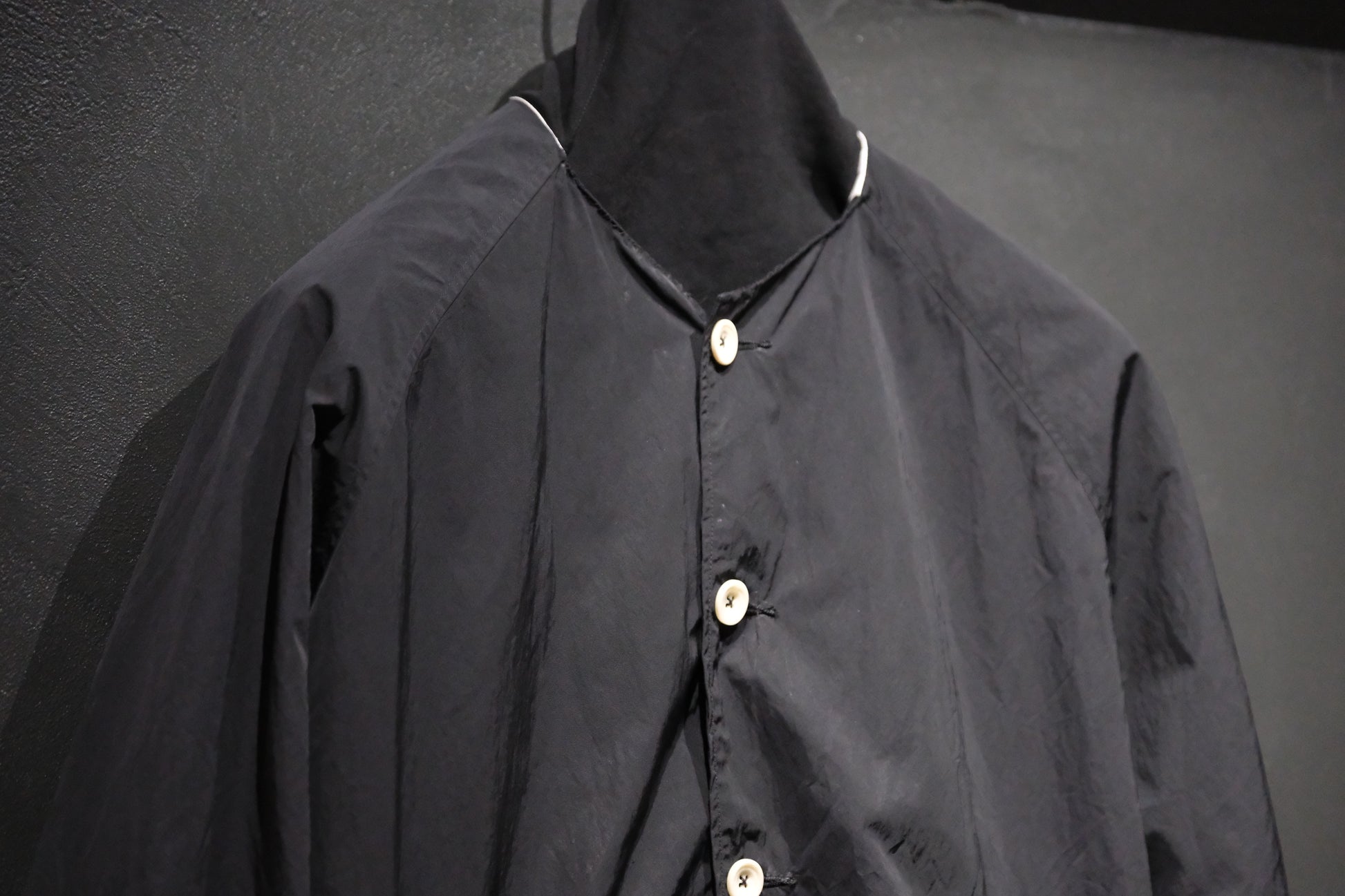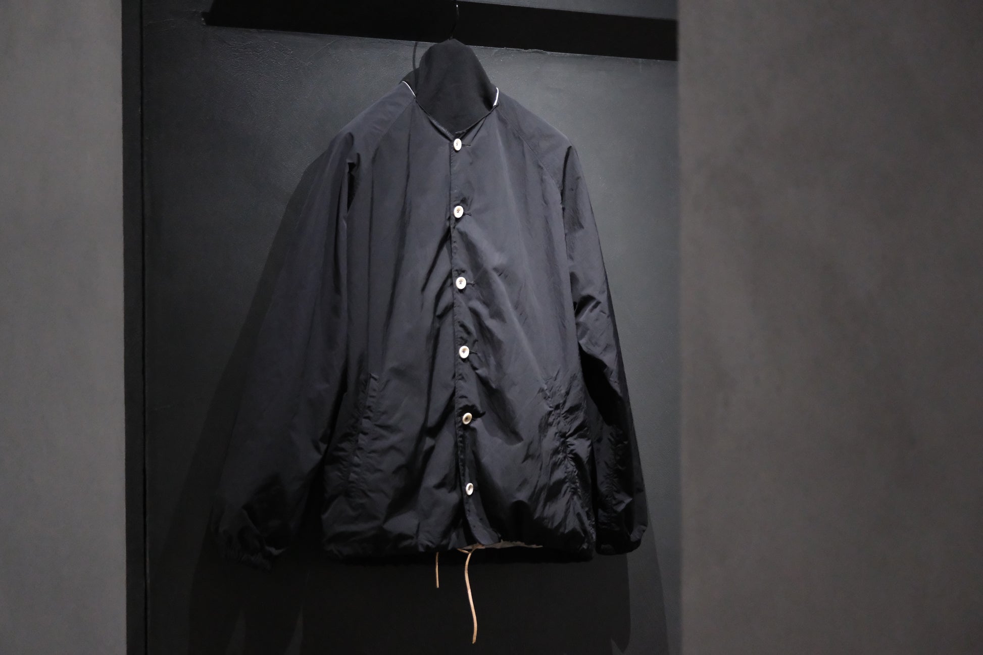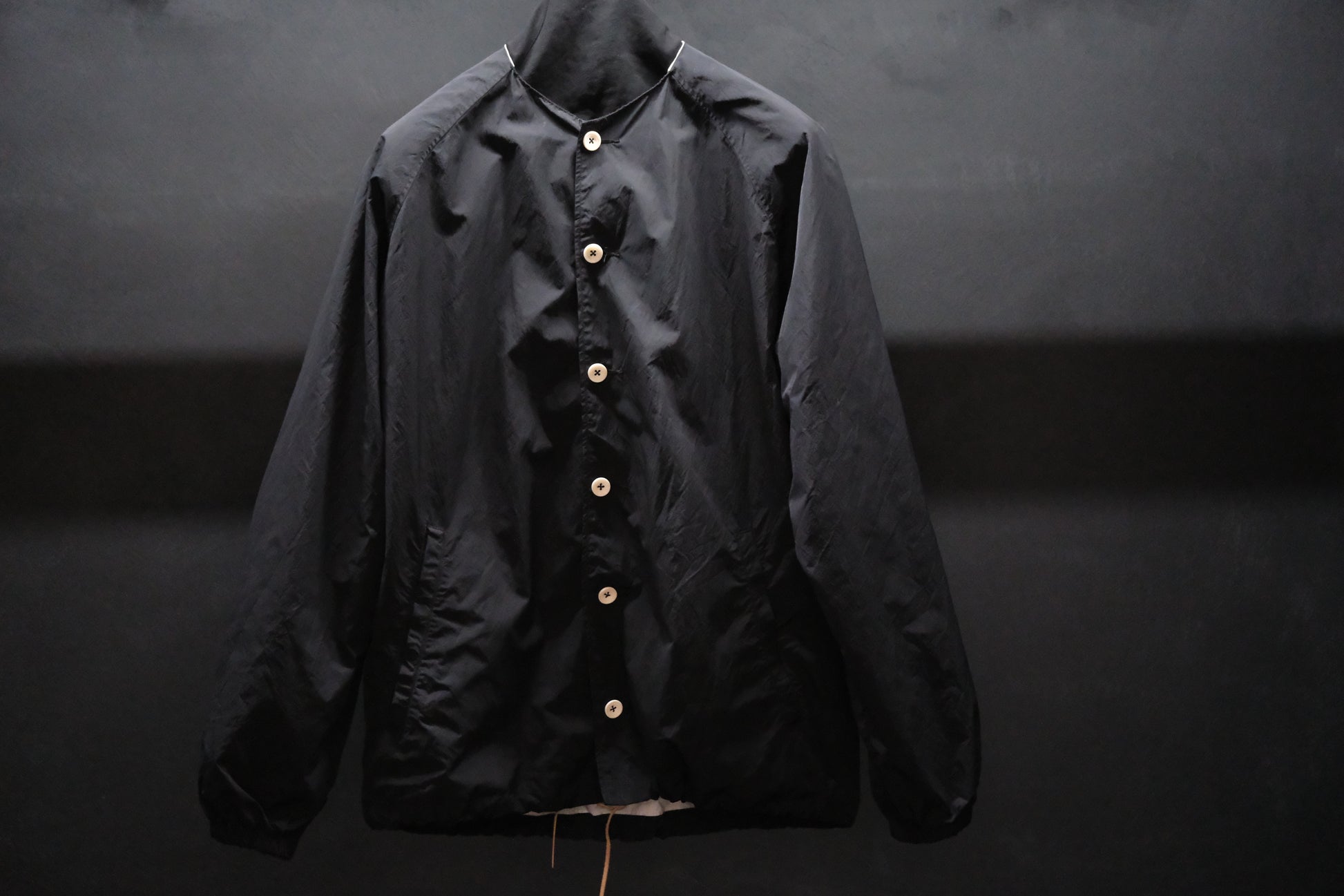 【受注商品】wright. / No-coller coach jacket (Hight density nylon taffeta coating / European vintage linen Sumi ink dye )