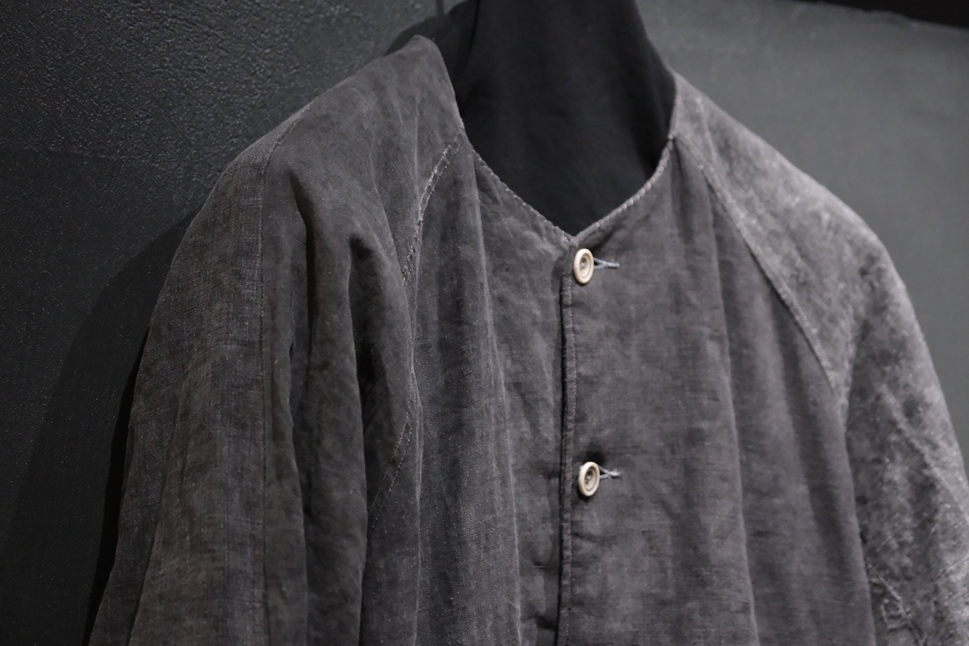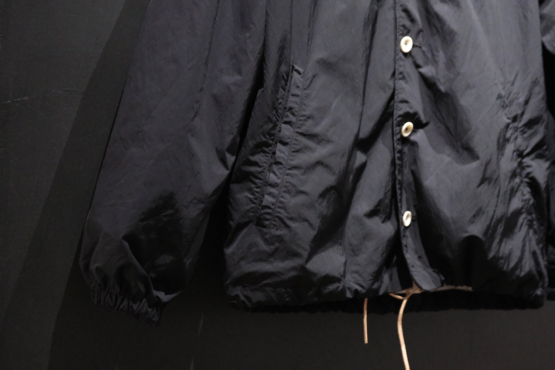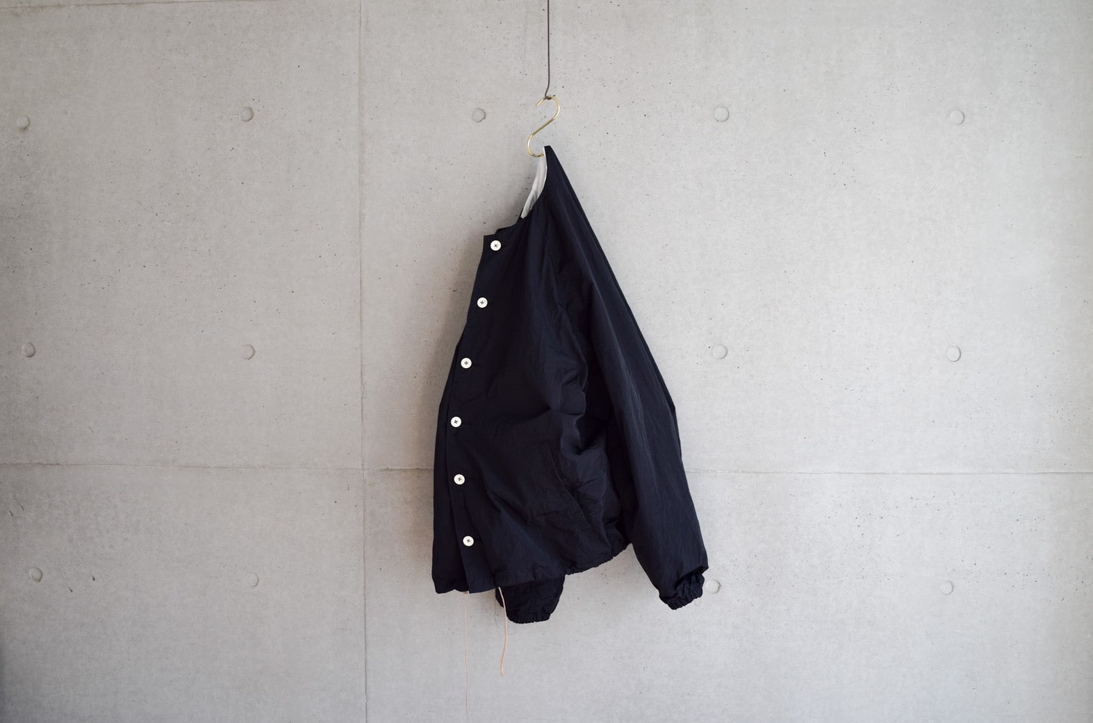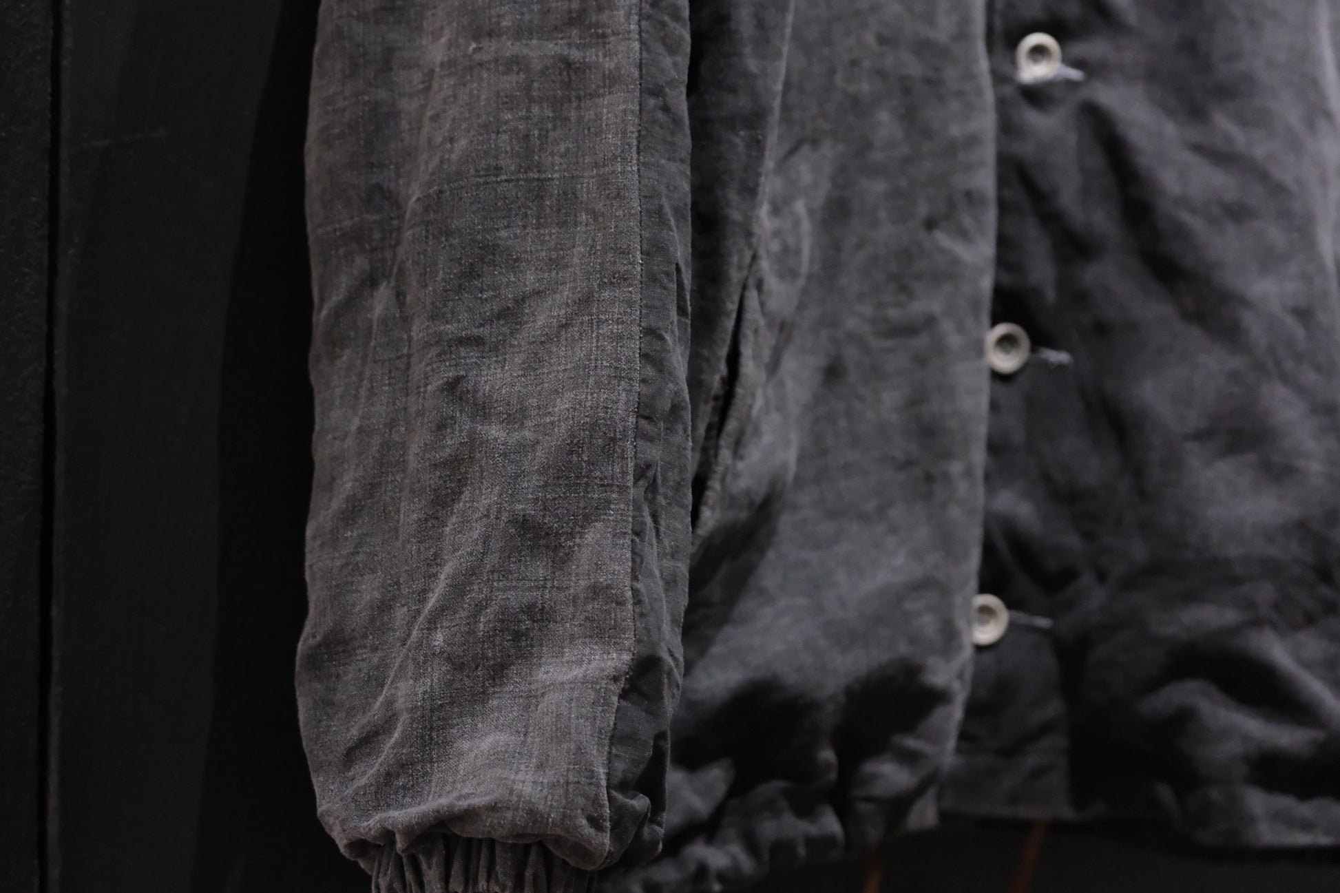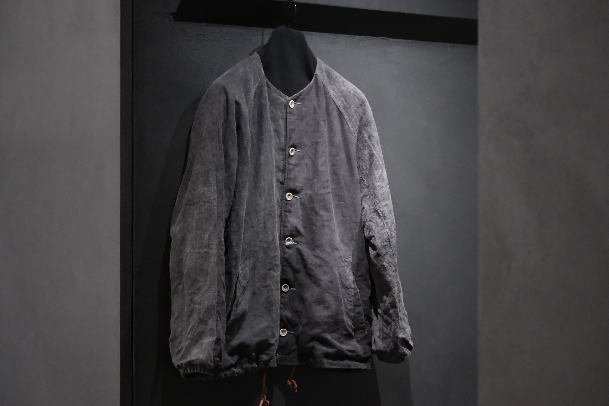 【受注商品】wright. / No-coller coach jacket (Hight density nylon taffeta coating / European vintage linen Sumi ink dye )