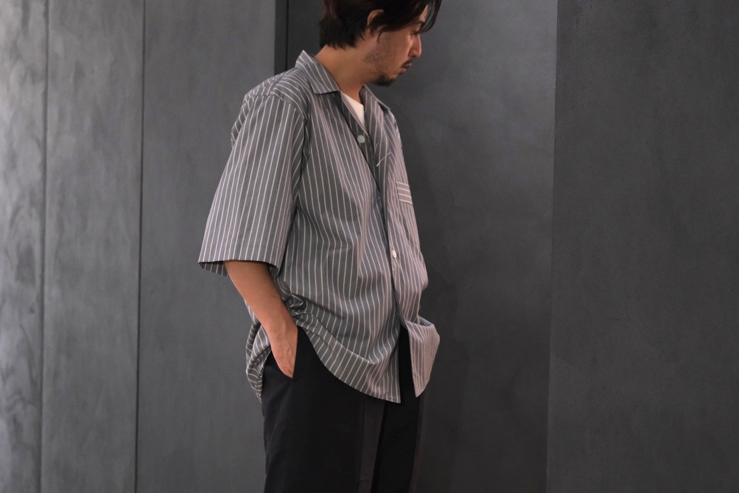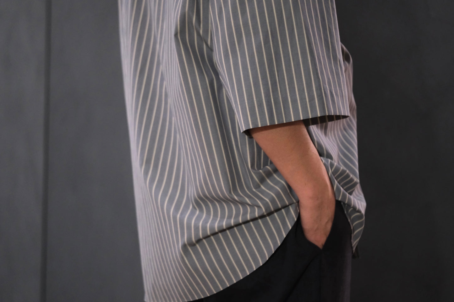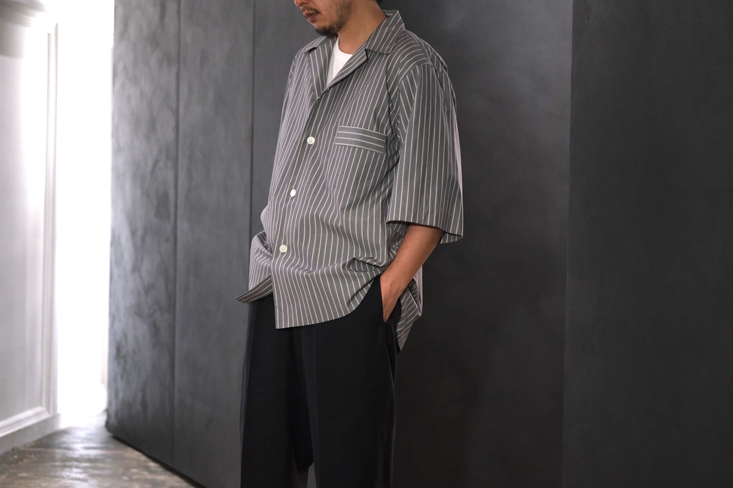 全体的にリラックスしたシルエットで、袖、パンツの裾に関しても少し長めの設定にしているので好きなところまで折り返してオリジナルの着方を楽しんでいただきたい一着です。