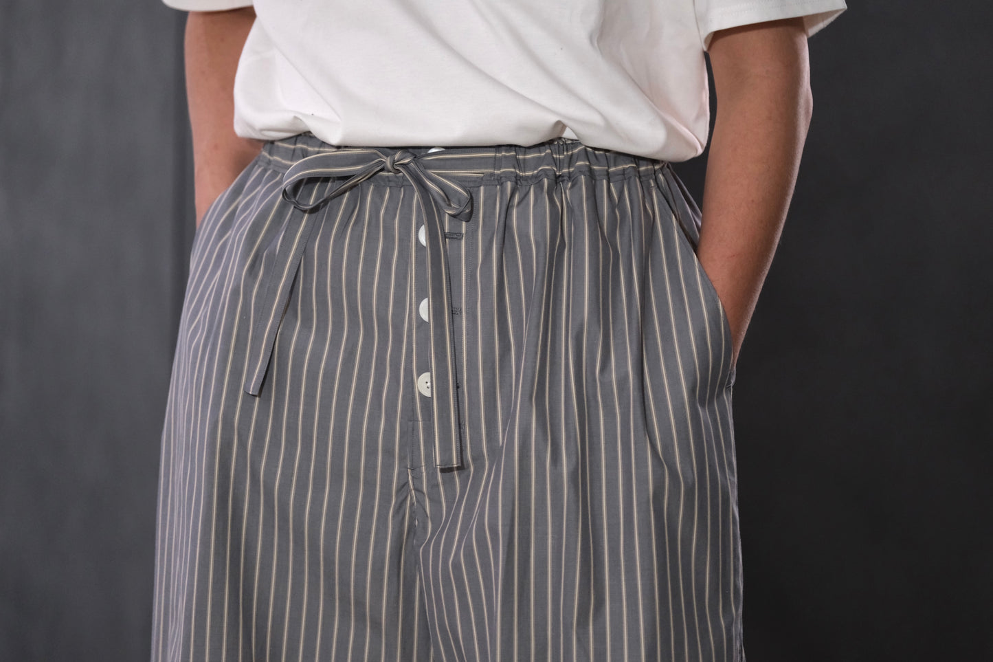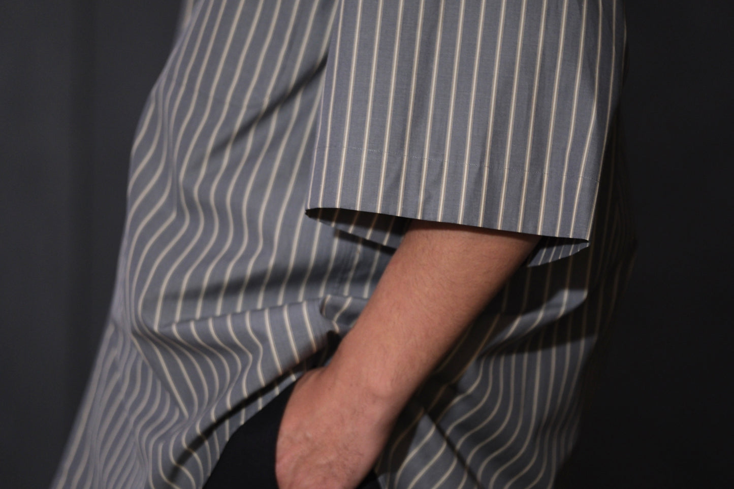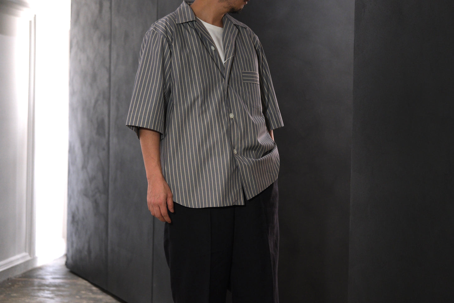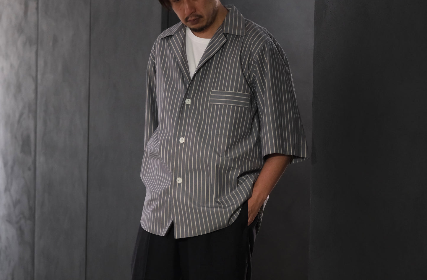 全体的にリラックスしたシルエットで、袖、パンツの裾に関しても少し長めの設定にしているので好きなところまで折り返してオリジナルの着方を楽しんでいただきたい一着です。