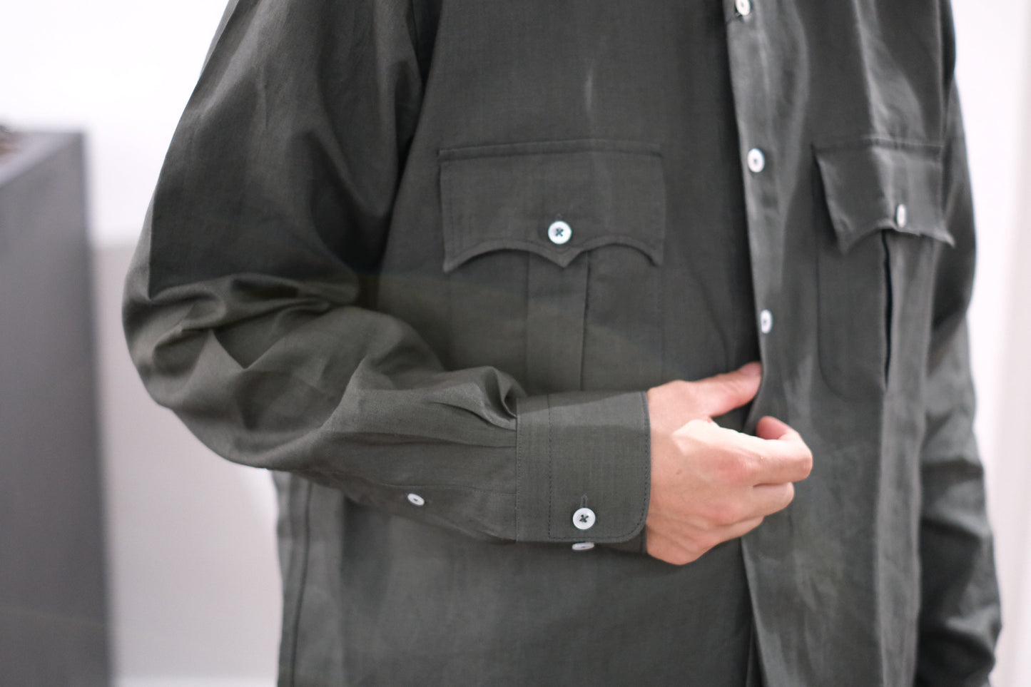 定番モデルのプルオーバーシャツ「TRAVELER SHIRT」をベースに、ミリタリーのデザインを加えた新しいモデルの「MILITARY SHIRT」