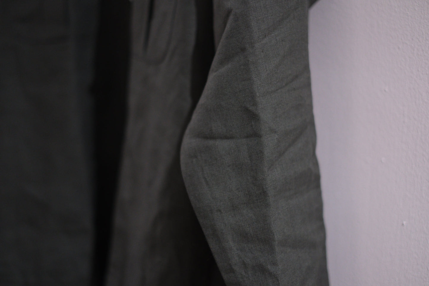 生地に関してはスペンスブライソンのアイリッシュリネンを使用しており、ヘビーウエイトに織り上げられたこの生地はジャケットやパンツに使用される様な地厚な生地になっています。
