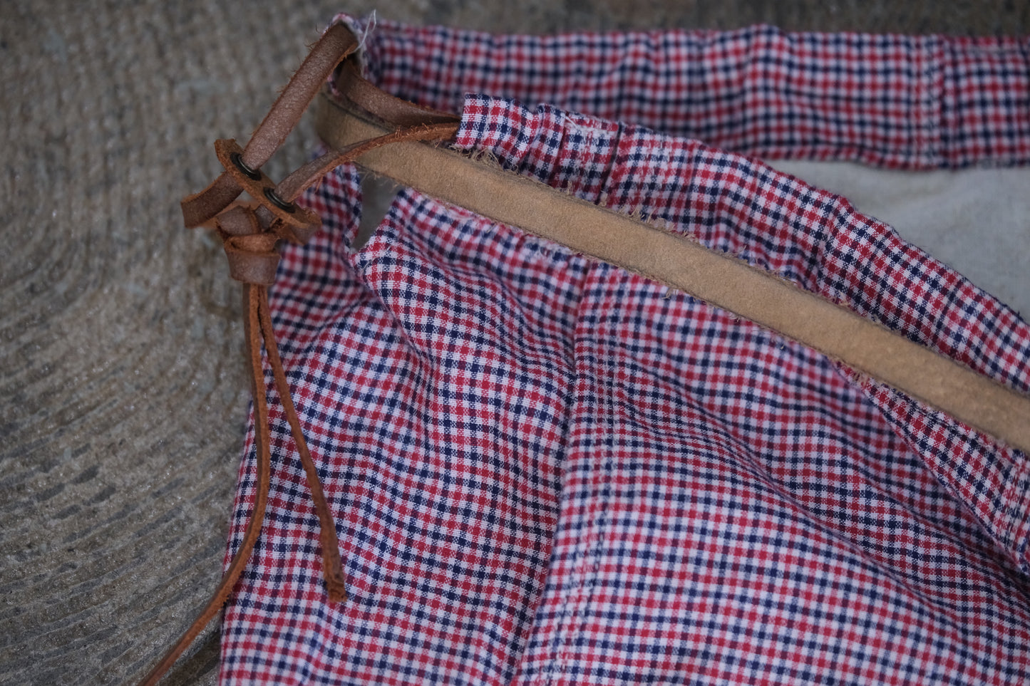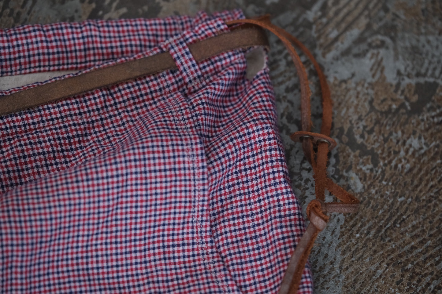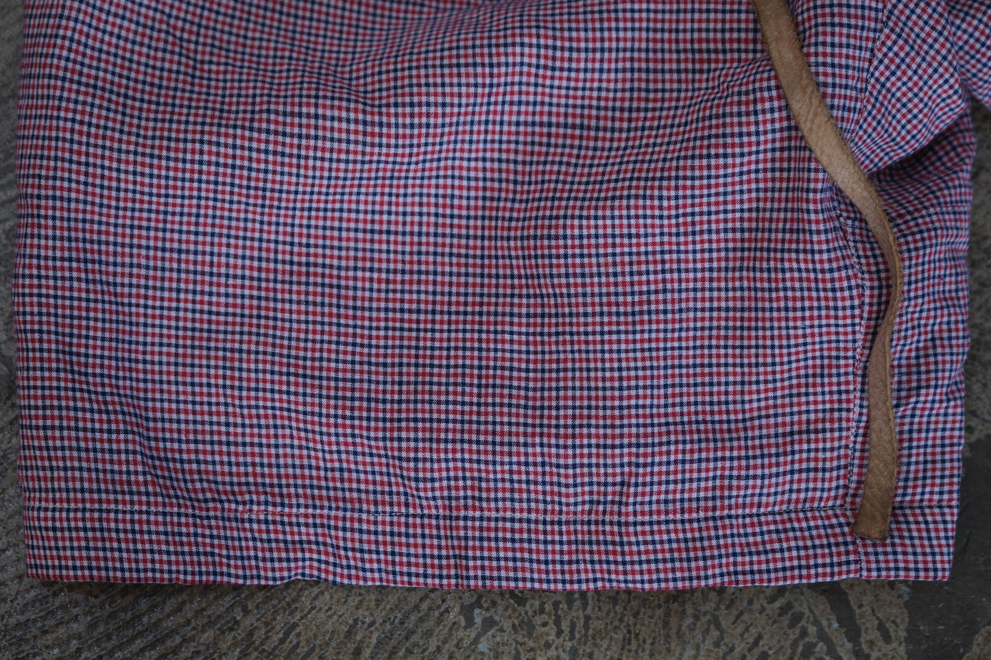 前後同じシルエットのショーツ。ギンガムチェックにはナチュラルカラーの綿麻50%,50%の裏地付き