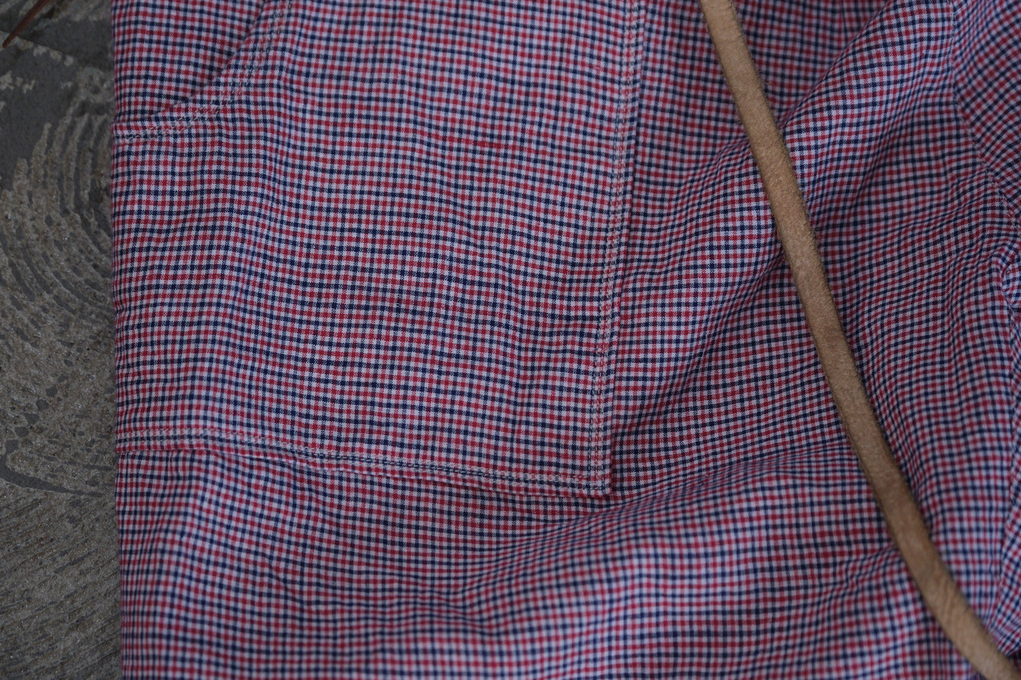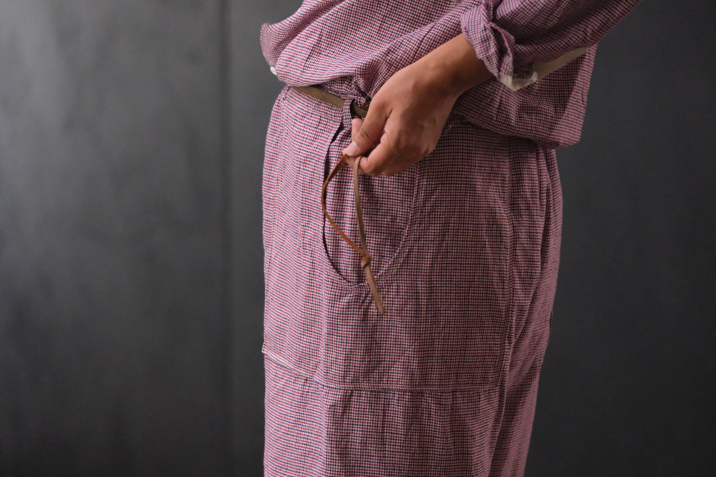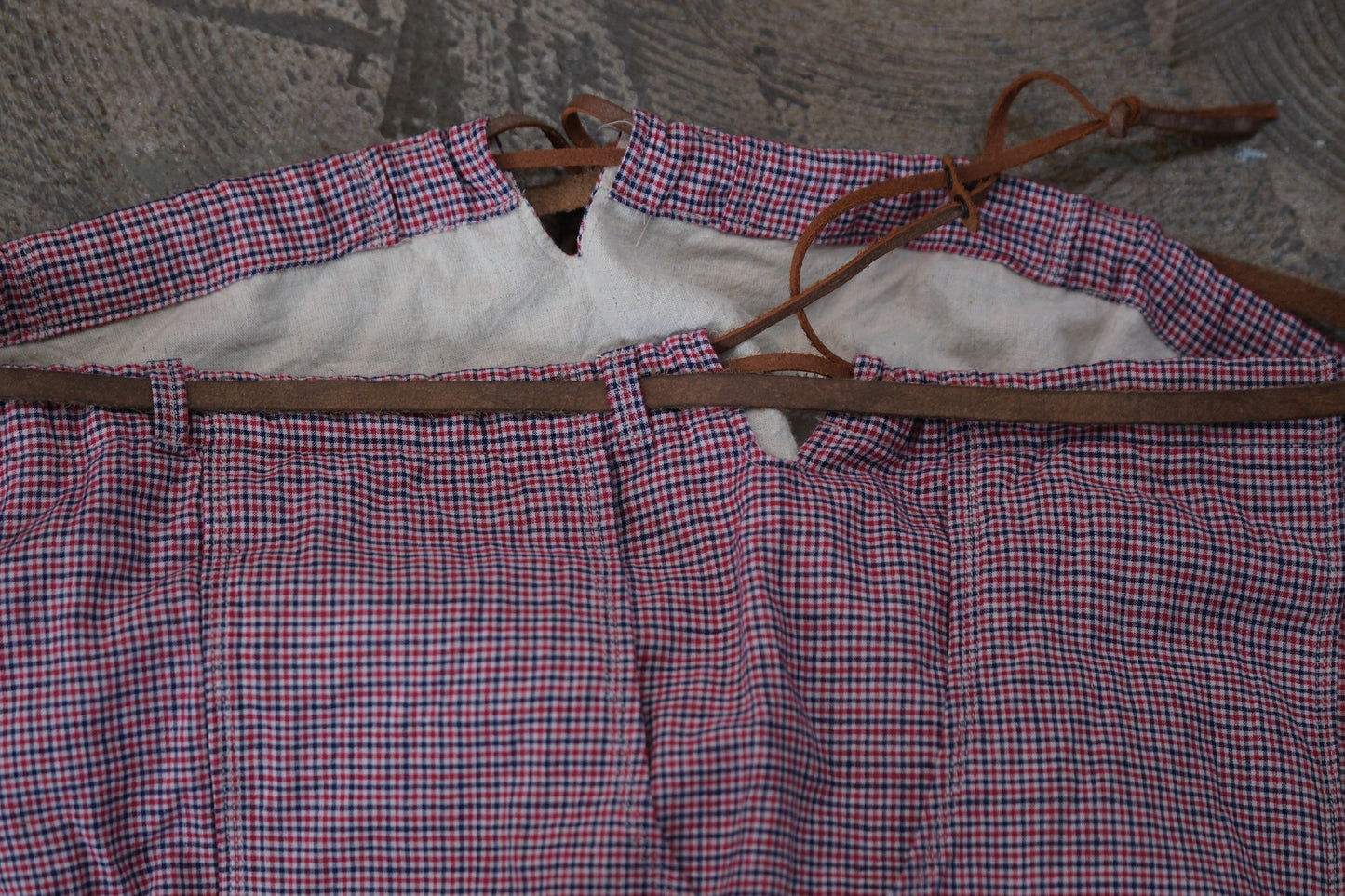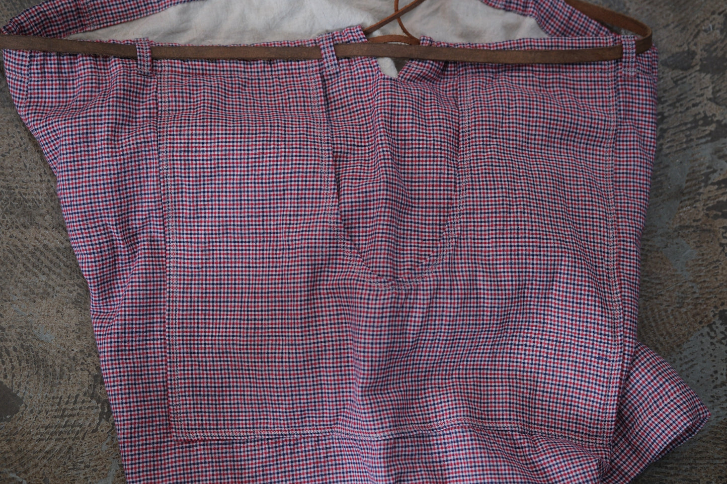 前後同じシルエットのショーツ。ギンガムチェックにはナチュラルカラーの綿麻50%,50%の裏地付き