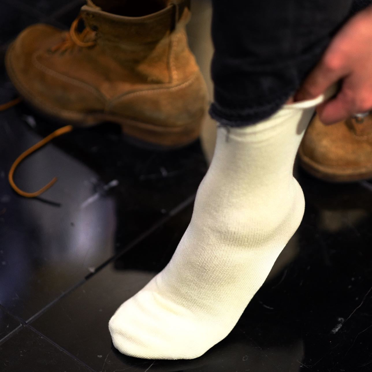 そこで今回は表面に風を止める力の強いコットンを配置し、中にシルクを入れることにより、シルクの保温性を活かすとても暖かい靴下に仕上がりました。
