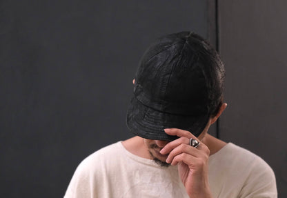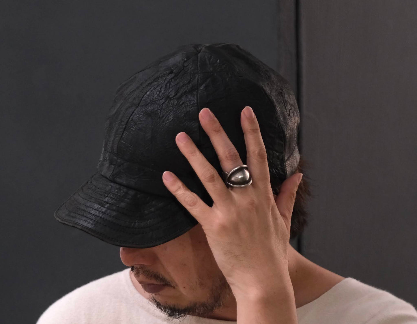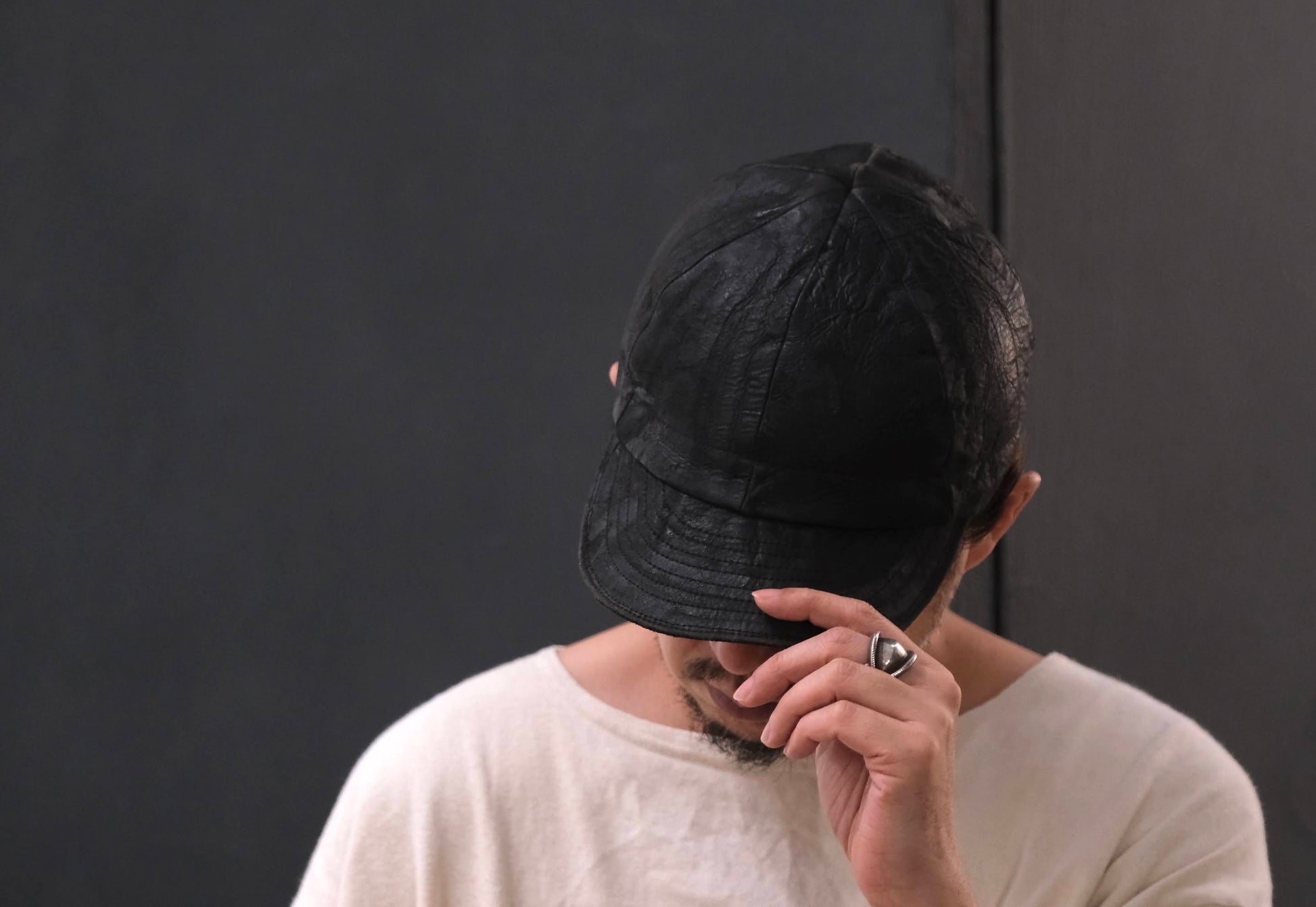 アトリエにお邪魔させていただいた時の試着もさせていただいたのですが、少し浅めのデザインで僕のハチの張った僕の頭では少し深さが足りず泣く泣く断念していたCAPでしたが、今回私のわがままでリサイズをしていただき、しっかりと被れる深さのCAP,HATを作成していただけました。