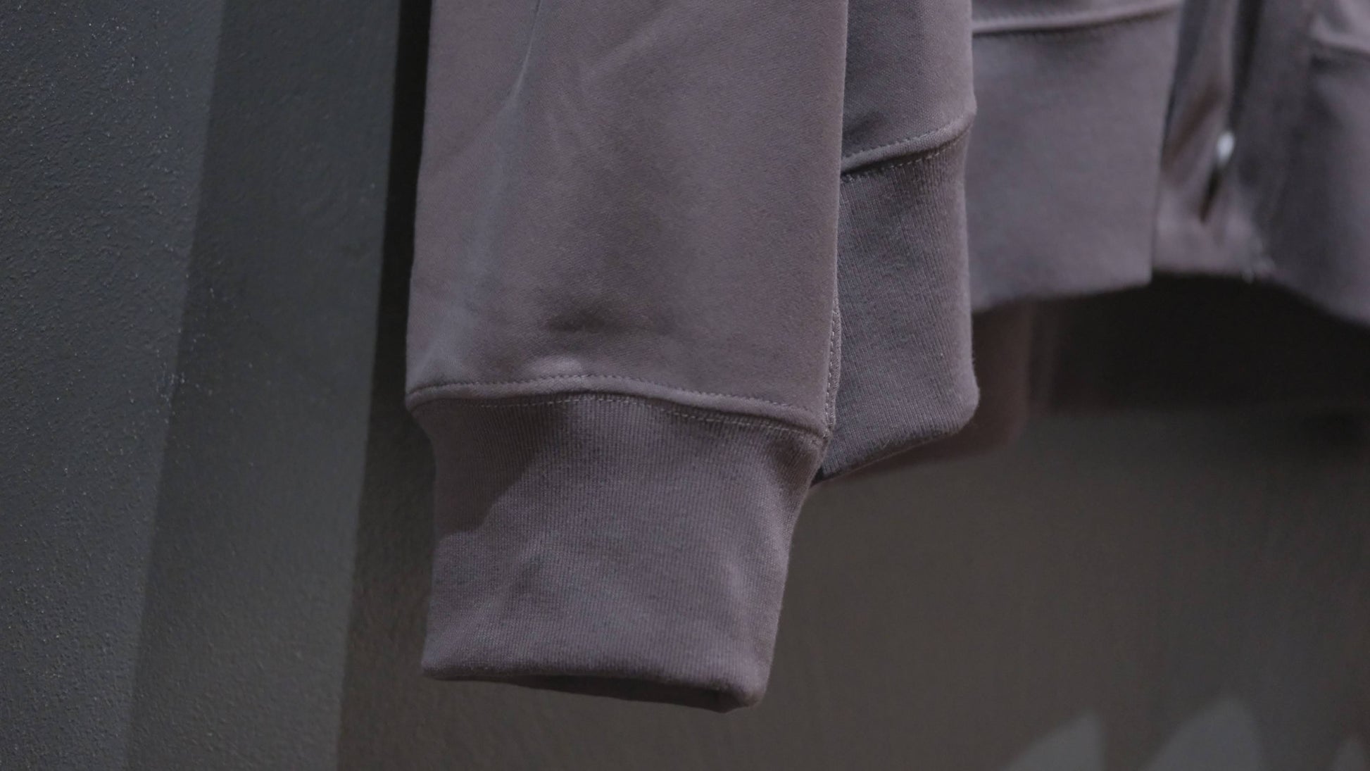 素材は、滑らかな光沢と豊かな風合いを併せ持つ「スムース」組織をベースに、nonnotte独自の視点で再構築しました。