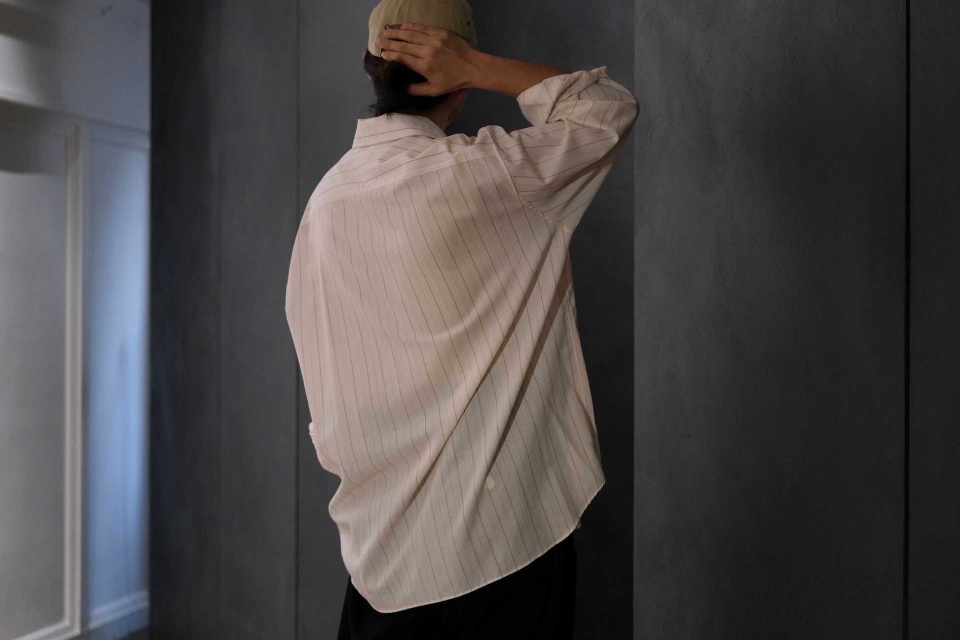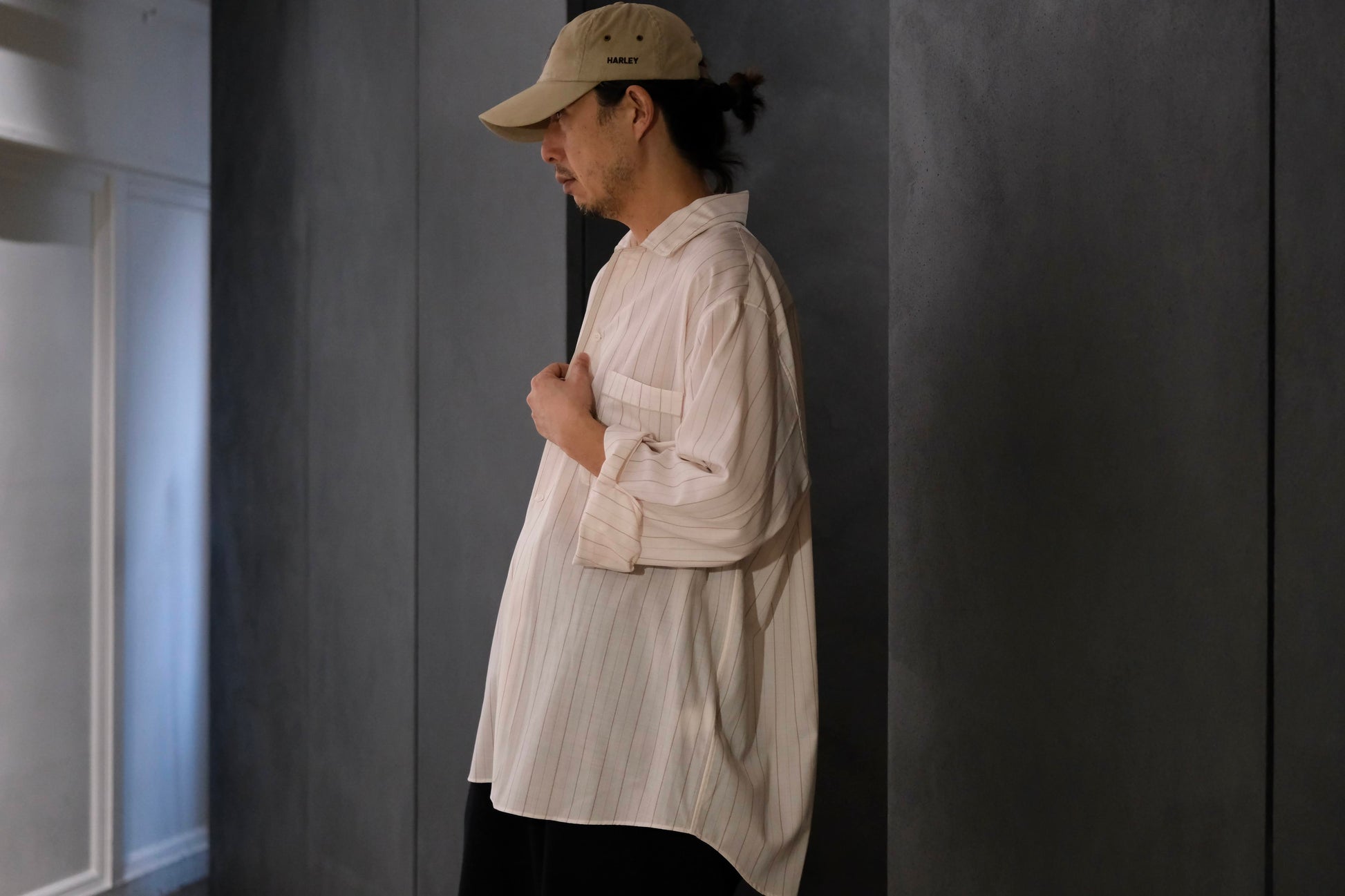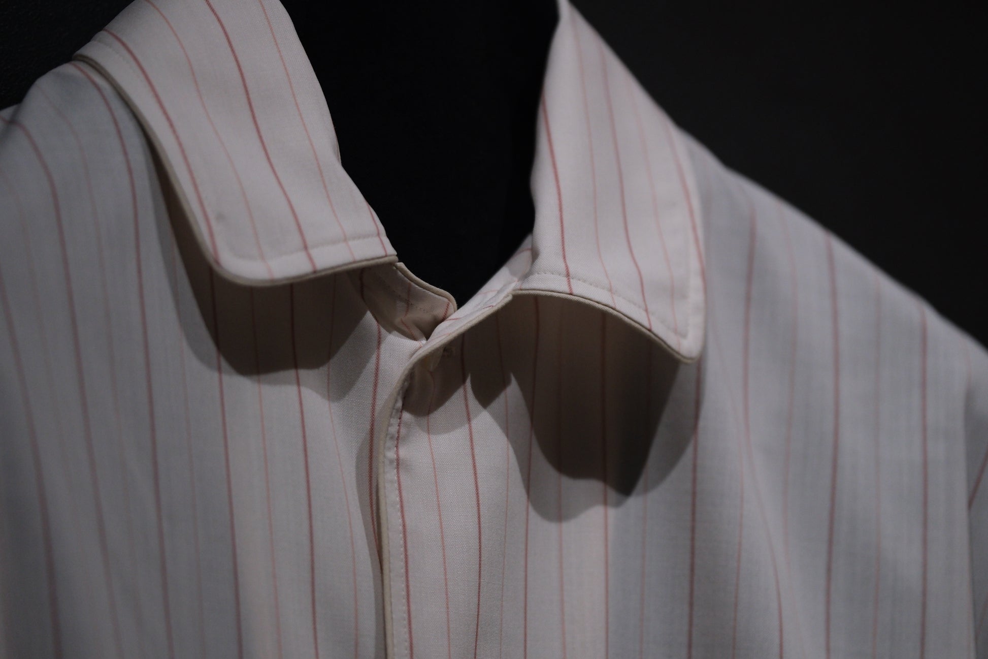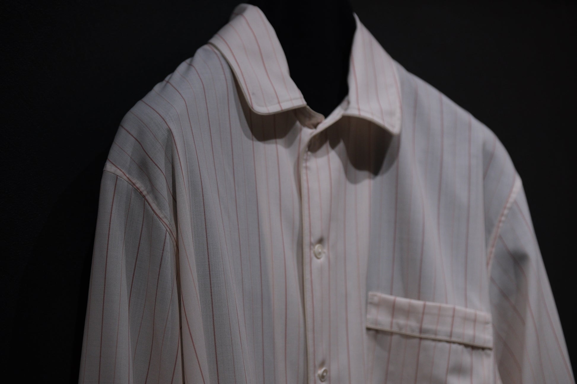 一般的には「パイピングシャツ」や「パジャマシャツ」と呼ばれる形をベースにしていますが、私はこれを単なるリラックスウェアの延長線上ではなく、シャツの新しい美学として昇華したいと考えました。