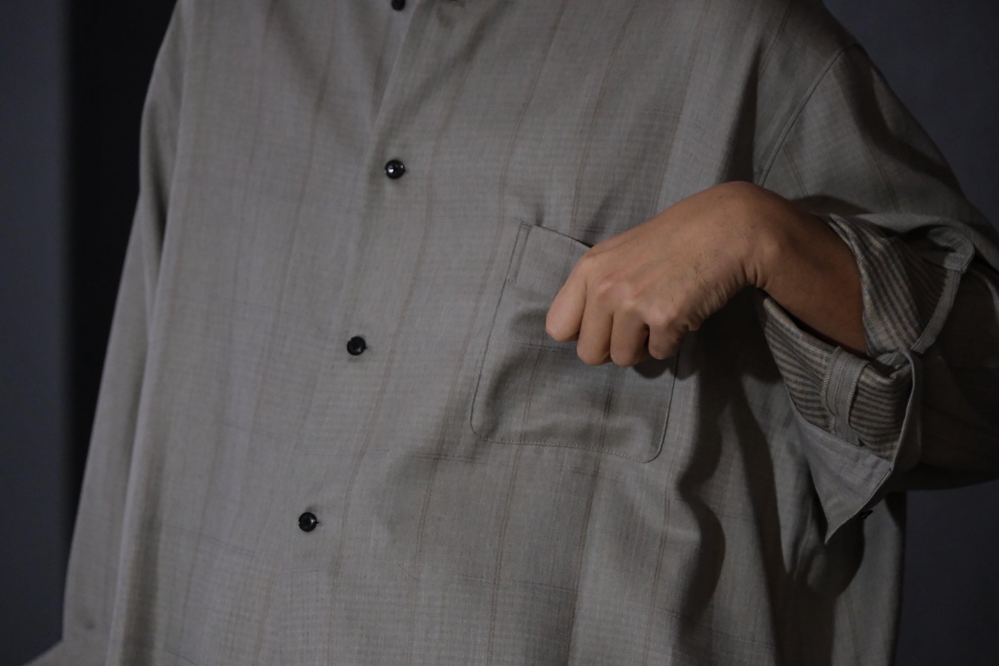 nonnotte/Minimum Shawl Collar Oversized Shirt/Wool/Silk Ghost Plaid