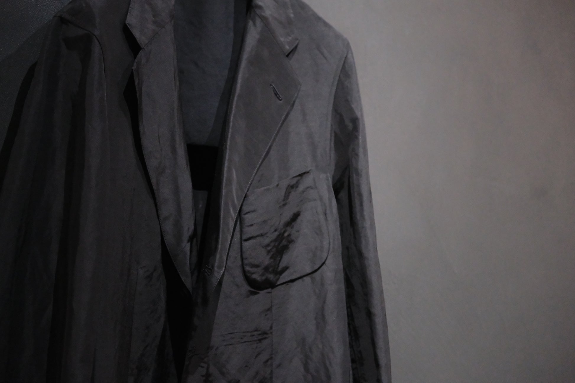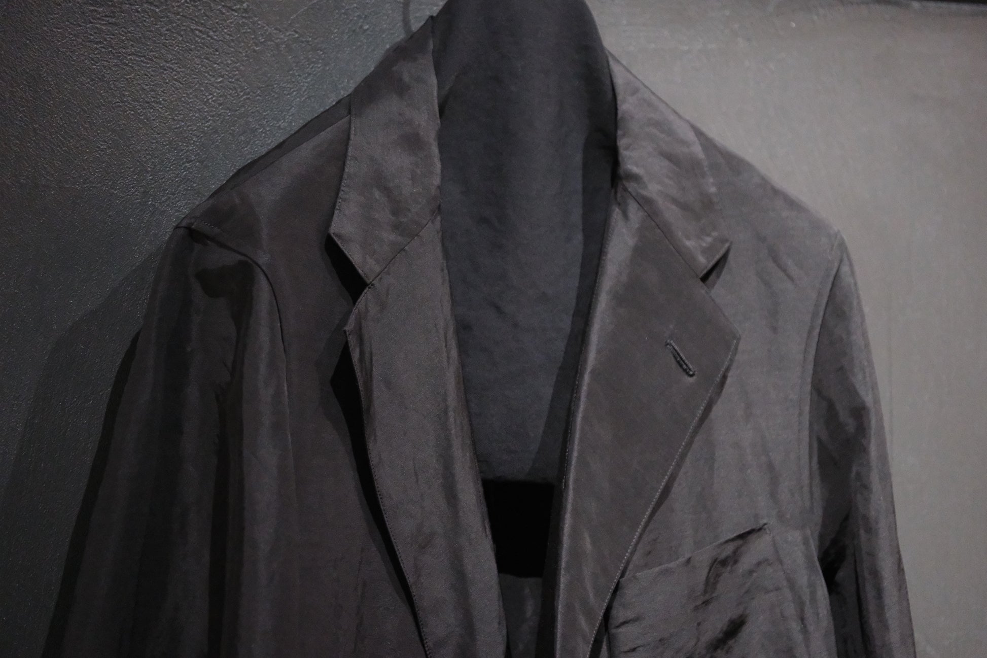シルエットの美しさだけでなく、素材の陰影が、動きに合わせてさりげなく浮かび上がるのも、このジャケットならではの魅力です。